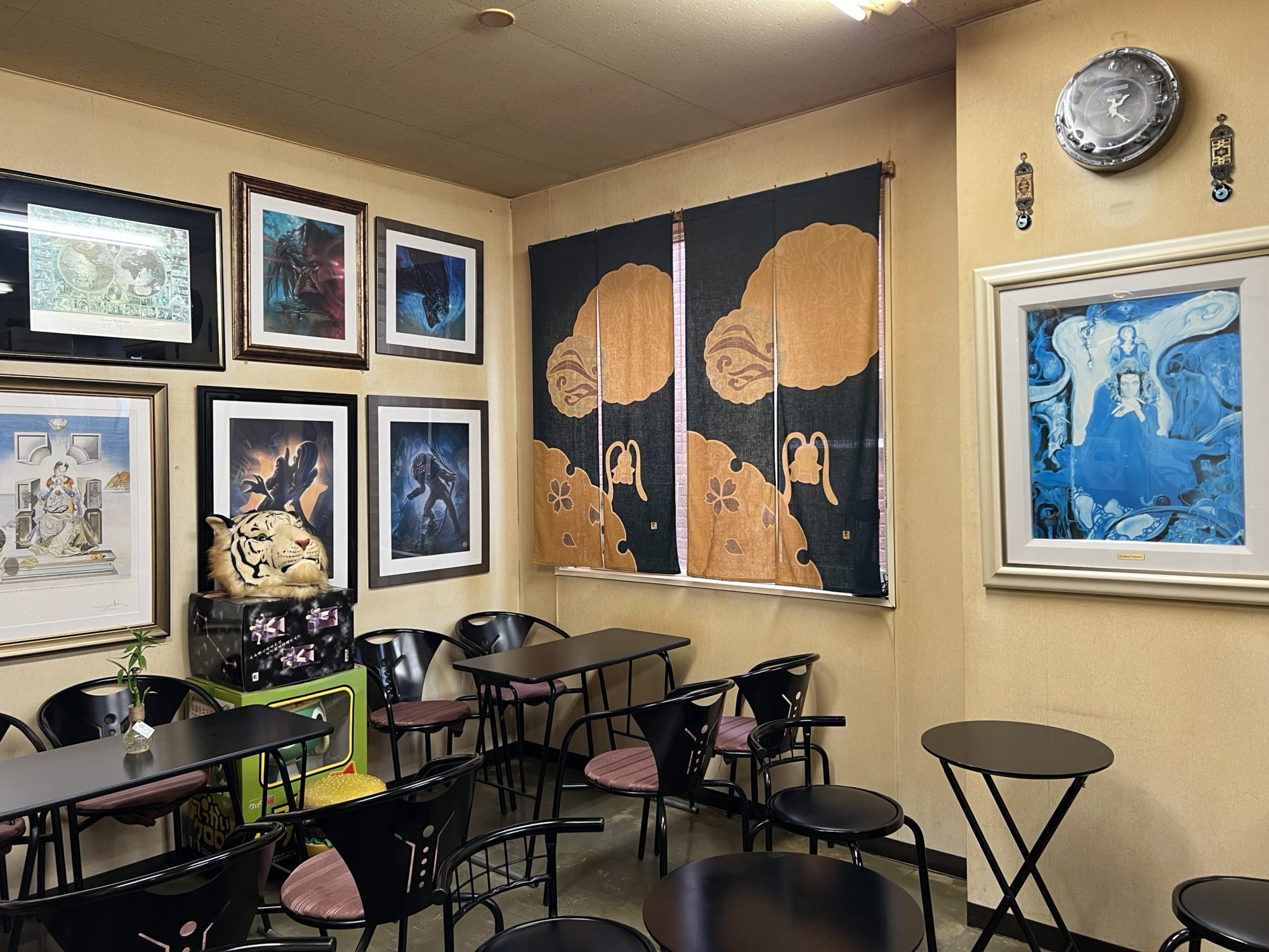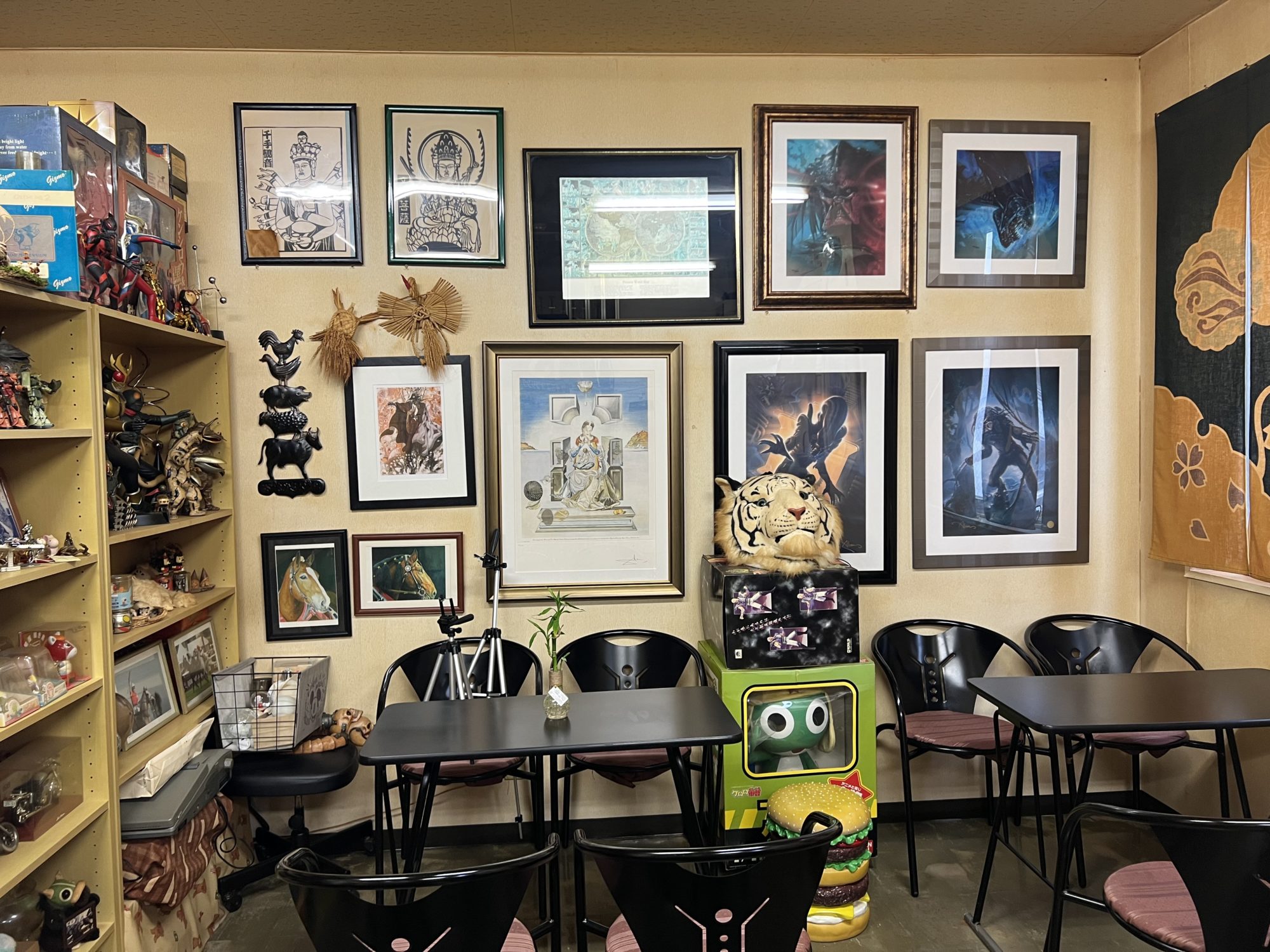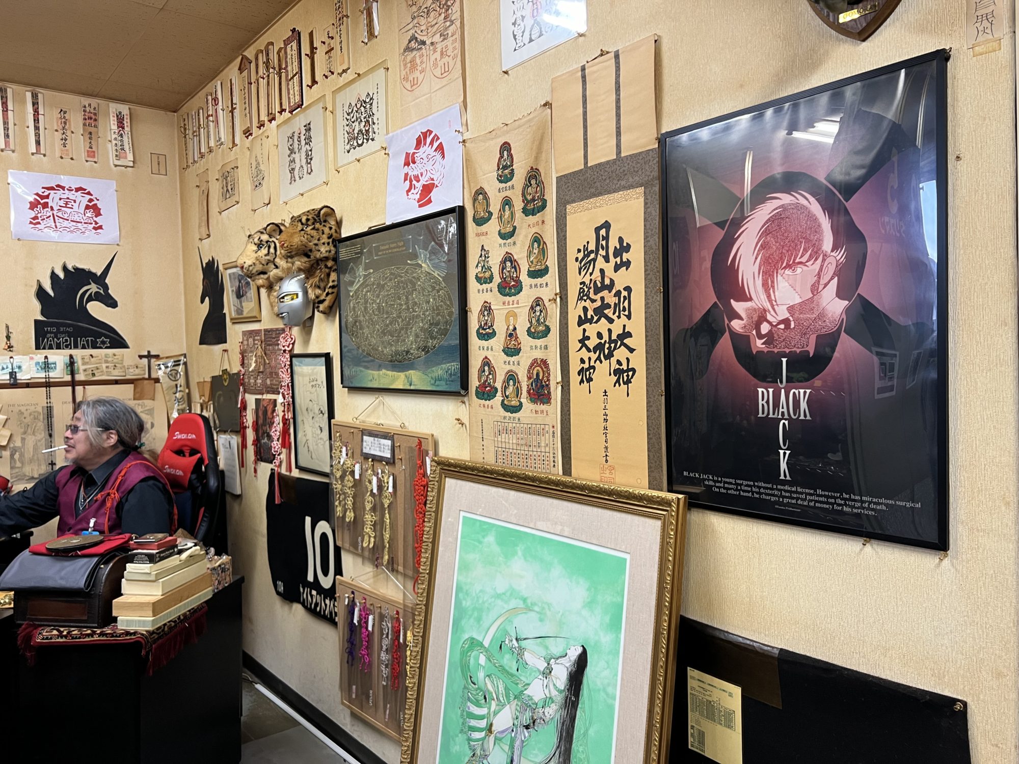 店内には全国各地のお神札や、マスターの趣味のフィギュア・絵画が飾ってあります。